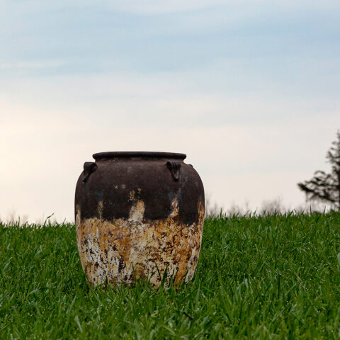 Den patinerede overflade giver krukkerne et antikt og autentisk udtryk, og hver eneste krukke får på smukkeste vis en helt unik farvekombination. Ikke to krukker vil være ens.
