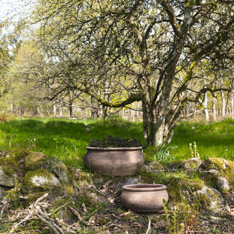 Store, håndlavede krukker, specielt designet til træer og buske med store rodnet.