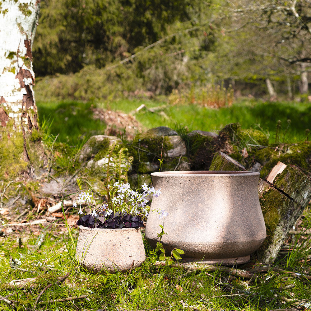 - Lerblanding med jern og chamotte, som gør krukkerne yderst holdbare.